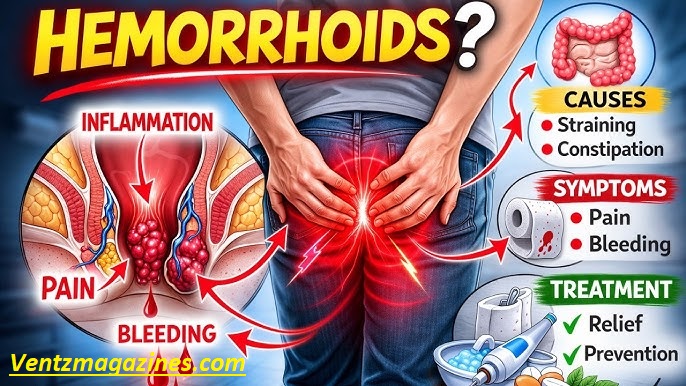 Hemorrhoids often develop due to constipation, straining during bowel movement, pregnancy, prolonged sitting, heavy lifting, or chronic diarrhea. These factors increase pressure on the veins in the rectal area.